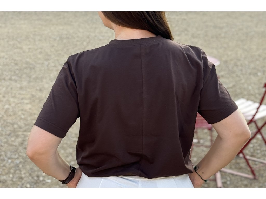 Vertikální šev uprostřed zadního dílu vyniká jako stylový prvek, ale také dodává tričku rafinovaný a nezaměnitelný vzhled. Ideální volba pro ty, kteří hledají pohodlný a odolný kousek s moderním designem.